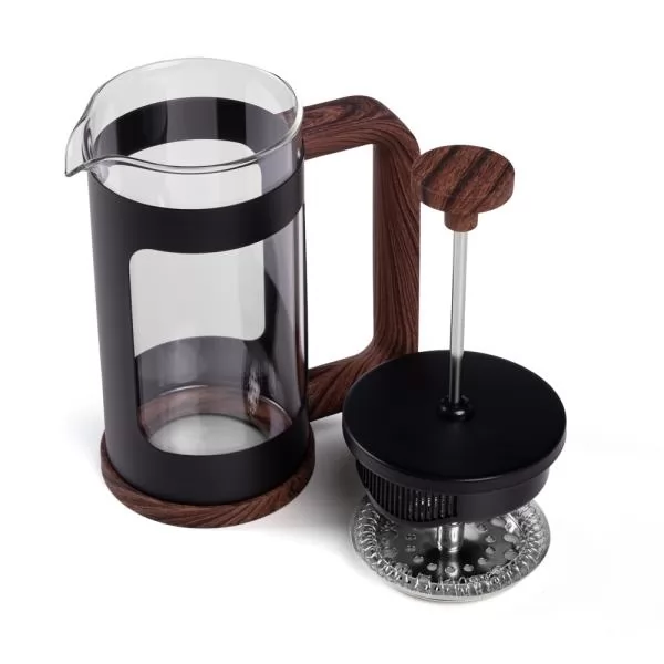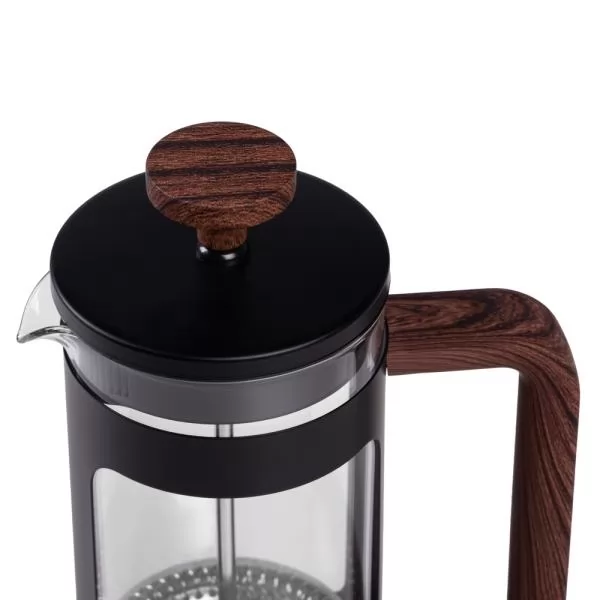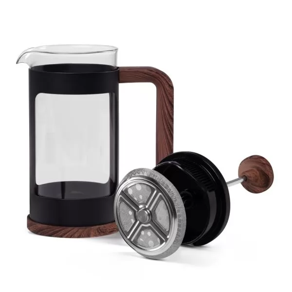 Cafeteira prensa francesa em Vidro Borosilicato / Metal com detalhes amadeirados com capacidade de 350ml. Também pode ser usado para o preparo de chás. Não necessita de filtro para o preparo do seu café/chá.